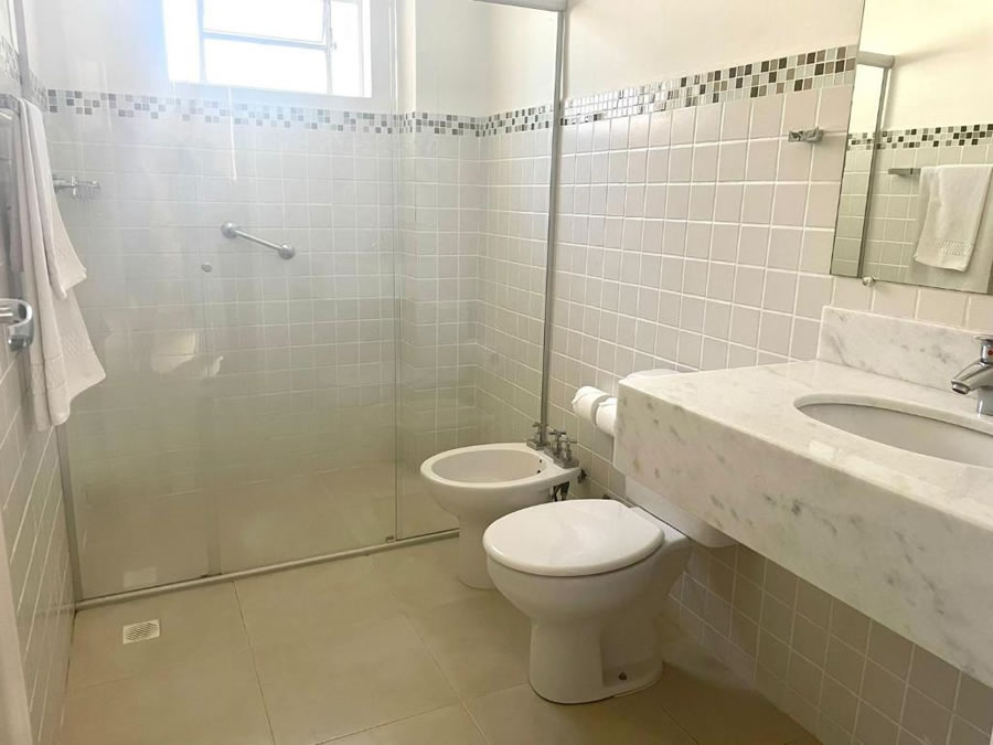 O Grande Hotel Amparo oferece hospedagem confortável com estrutura ideal para famílias, casais e viajantes a trabalho. Os quartos são equipados com ar-condicionado, banheiro privativo, TV, frigobar, guarda-roupa, mesa de trabalho e sofá-cama, além de agradáveis vistas para a montanha ou para a cidade. O hotel disponibiliza Wi-Fi gratuito, elevador, recepção 24 horas, serviço de limpeza e opções de quartos interligados, garantindo praticidade e comodidade durante a estadia. Para começar bem o dia, os hóspedes podem desfrutar de um café da manhã especial servido diariamente, muito elogiado por quem visita o Grande Hotel Amparo.