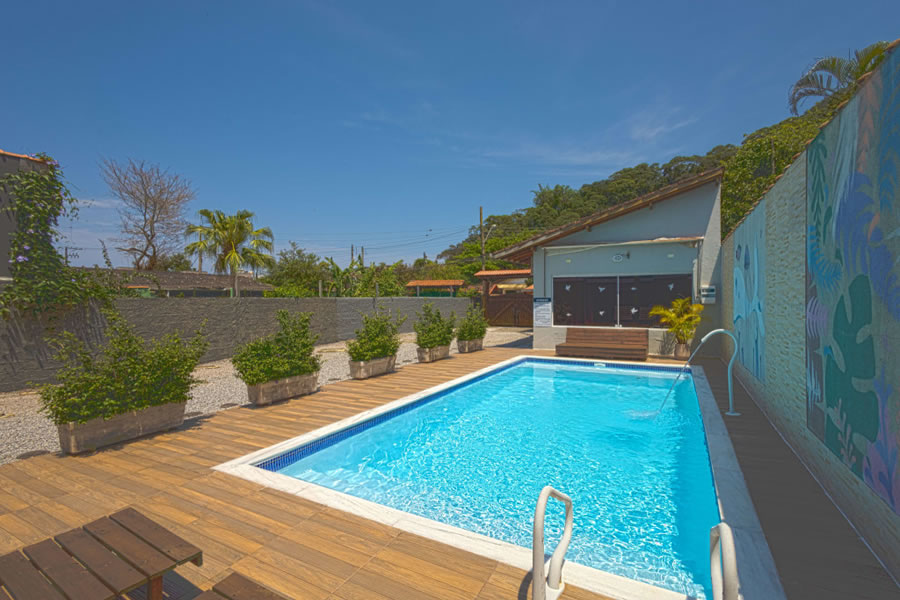 A Pousada da Árvore em Boiçucanga oferece hospedagem confortável a apenas 2 minutos da praia, com piscina ao ar livre, Wi-Fi gratuito, quartos com ar-condicionado, banheiro privativo, TV de tela plana e roupa de cama e toalhas inclusas, além de opções com varanda e vista para a montanha ou piscina, proporcionando uma estadia tranquila em meio ao jardim e à natureza.
