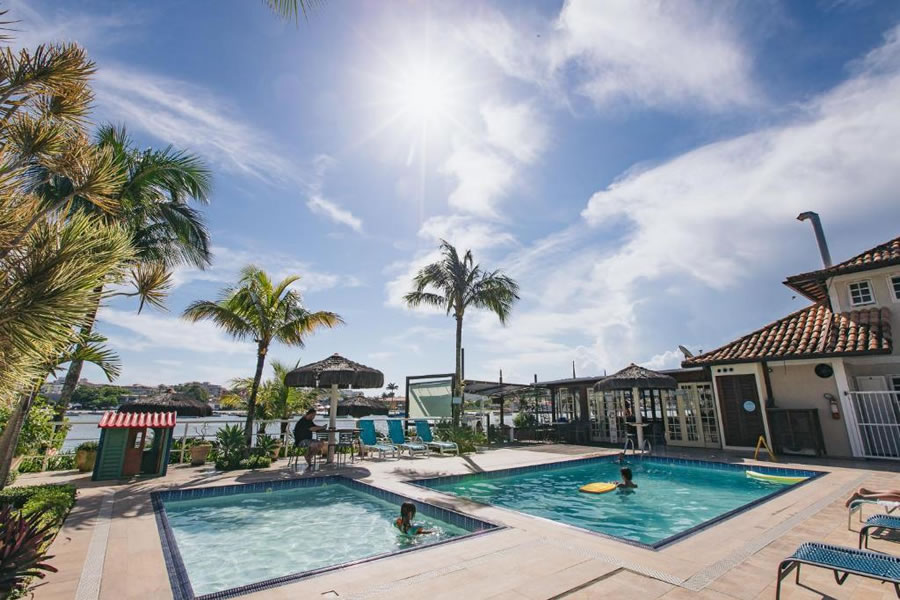 A Pousada Residencial Portoveleiro, em Cabo Frio, oferece conforto e lazer com piscinas para adultos e crianças, além de um restaurante e bar à beira da piscina. Os quartos contam com ar-condicionado, TV a cabo, frigobar e vista para os jardins ou piscina, garantindo uma estadia agradável. O Wi-Fi é gratuito, e o café da manhã em estilo buffet inclui frutas, sucos e bolos regionais. O restaurante serve pratos nacionais e frutos do mar, enquanto o bar oferece coquetéis especiais. A pousada também dispõe de recepção 24 horas e sala de TV para relaxar após um dia de praia.