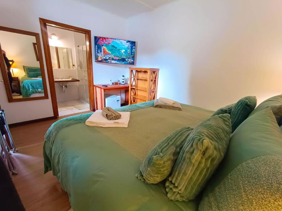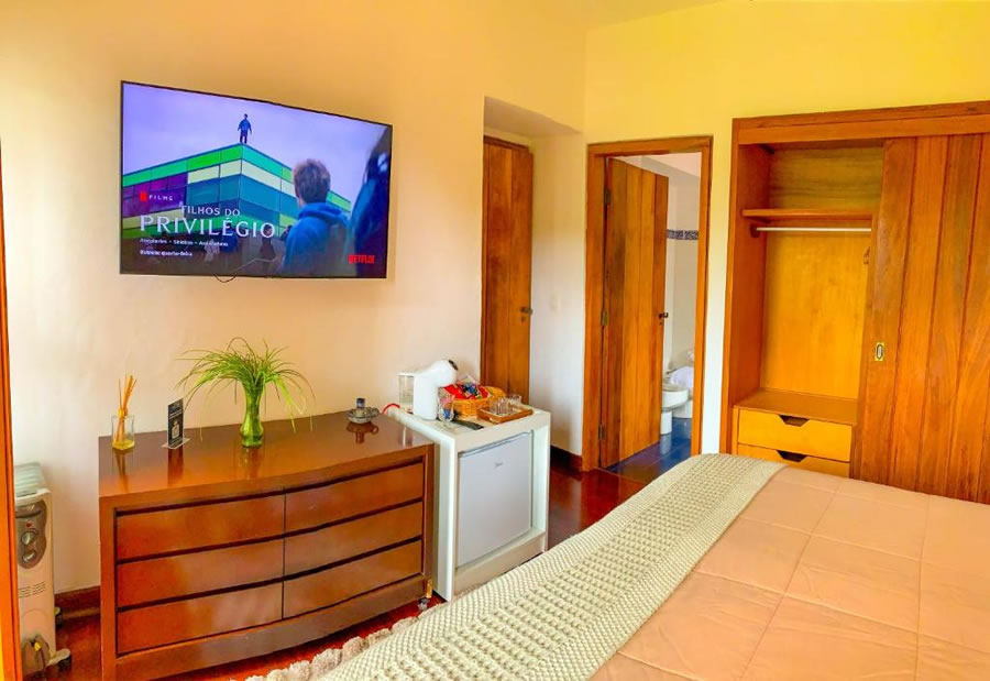 A Pousada Hortelã, em Campos do Jordão, oferece acomodações confortáveis e ideais para famílias, com quartos equipados com banheiro privativo, vista para o jardim, Wi-Fi gratuito, mesa de trabalho e frigobar. A estrutura inclui jardim exuberante, terraço ao ar livre, lareira externa, cafeteria e área para piquenique, proporcionando momentos de descanso e convivência. Os hóspedes contam ainda com estacionamento privativo gratuito e um café da manhã buffet servido diariamente, reconhecido pela qualidade e variedade, garantindo uma estadia acolhedora, prática e agradável na serra.