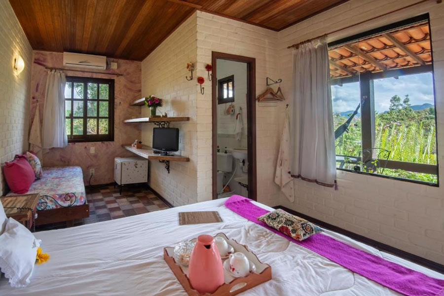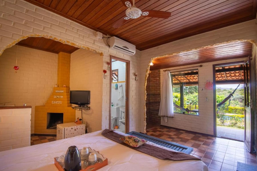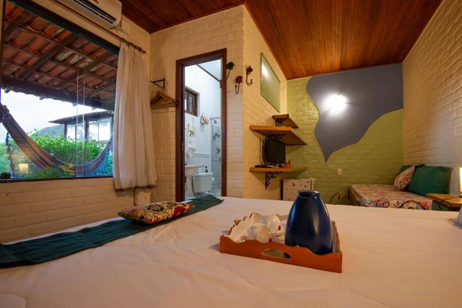A Pousada Villa Lagoa das Cores, no Vale do Capão, oferece acomodações charmosas com decoração acolhedora, cercadas por montanhas e natureza. Com piscina ao ar livre, spa holístico e espaços para meditação, é ideal para relaxar e renovar as energias. Os quartos climatizados contam com varanda com vista e TV de tela plana, garantindo conforto e tranquilidade. Um café da manhã caseiro é servido diariamente, e a região oferece trilhas e atividades ao ar livre que completam a experiência em um dos destinos mais especiais da Chapada Diamantina.
