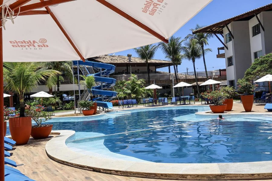 O Hotel Aldeia da Praia, localizado na Praia dos Milionários, oferece tranquilidade em um ambiente agradável, com piscina ao ar livre, salão de jogos, Wi-Fi gratuito e estacionamento no local. Os quartos são coloridos e confortáveis, equipados com ar-condicionado, TV e frigobar. O restaurante serve diariamente um delicioso café da manhã com opções locais e internacionais, além de pratos da culinária tradicional baiana no jantar, ideal para quem busca conforto e boa gastronomia em Ilhéus.