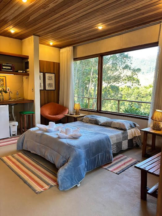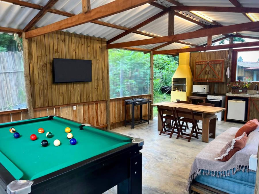 A Pousada O Bosque em Joanópolis é uma excelente opção para quem busca conforto e contato com a natureza, oferecendo estrutura completa com piscina ao ar livre, academia, jardim e terraço, ideal para momentos de lazer e relaxamento. A propriedade conta ainda com restaurante, cozinha compartilhada, lounge compartilhado e Wi-Fi gratuito em todas as áreas, garantindo praticidade durante a estadia. Os quartos são bem equipados, sendo que algumas unidades possuem varanda com vista para a montanha e outras contam com cozinha compacta com forno, frigobar e cooktop. A pousada oferece café da manhã servido diariamente e opções de lazer como bilhar, além de estar em uma região perfeita para trilhas, proporcionando uma experiência tranquila e acolhedora.
