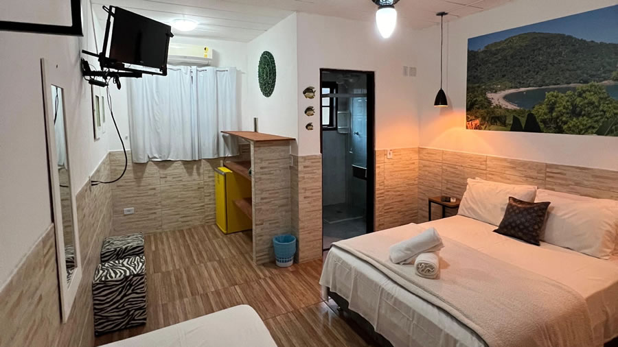A Pousada Maréatoa em São Sebastião oferece uma experiência exclusiva com sauna, piscina privativa, Wi-Fi e estacionamento gratuitos, além de apartamento de 1 quarto com ar-condicionado, TV de tela plana, sala de estar e cozinha equipada com frigobar, garantindo conforto, privacidade e praticidade para uma estadia relaxante no litoral.