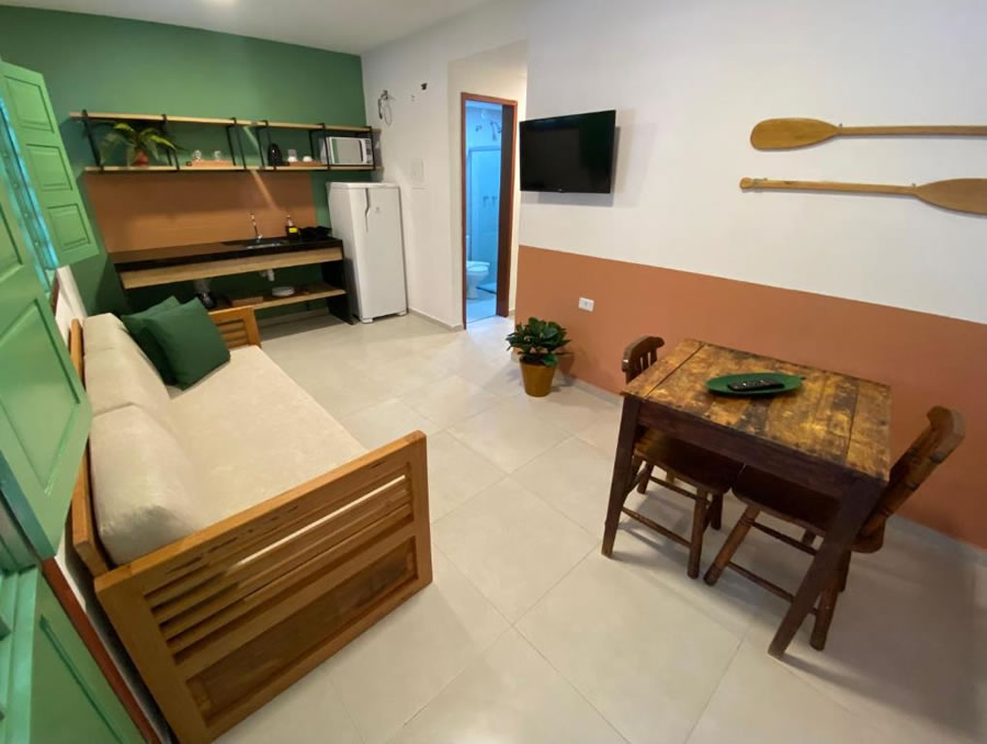 A Pousada Chalés Praias do Sul oferece acomodações confortáveis com ar-condicionado, piscina ao ar livre e buffet de café da manhã diário. Os hóspedes contam com Wi-Fi e estacionamento gratuitos, além de quartos equipados com TV, frigobar e banheiro privativo. As unidades possuem varanda térrea com rede, proporcionando momentos de descanso e tranquilidade em um ambiente acolhedor, ideal para quem busca conforto e lazer durante a estadia.