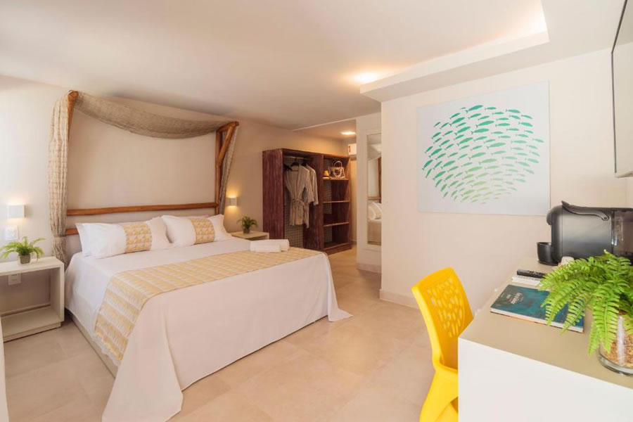 A Pousada Marajuba em Porto de Galinhas é uma charmosa pousada boutique à beira-mar, exclusiva para adultos, ideal para quem busca tranquilidade e uma experiência mais intimista. Com ambiente colorido e acolhedor, a propriedade oferece piscina ao ar livre com acesso direto à Praia de Merepe, perfeita para momentos de relaxamento. Os quartos são espaçosos, bem iluminados e equipados com ar-condicionado, TV, frigobar e banheiro privativo, sendo que algumas unidades contam com terraço privativo com rede, proporcionando ainda mais conforto. O café da manhã é servido diariamente com frutas da estação e especialidades locais, e o restaurante funciona ao longo do dia, oferecendo refeições tanto no ambiente interno quanto à beira da praia, garantindo uma experiência completa e agradável.